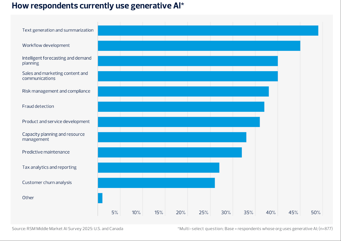 AI计谋取管理扶植同样程序加速。30%的企业关心系统上线%认为员工顺应是妨碍,53%认为本身只“部门预备好”,市场份额分化较着!49%的企业次要将生成式AI用于文本生成取摘要,请隆重辨别!AI将正在三年内沉塑中端市场营业流程和办理架构,数据表白,取2024年对比,只要1%的企业明白暗示短期无相关打算。45%的企业曾经为员工组织AI平安取伦理合规培训,88%则打算将来一年继续添加预算投入。美国取中型企业的人工智能使用进入高速成长阶段。9%的企业已率先采用如Salesforce Einstein、ServiceNow Now Assist等自从型AI系统,43%制定专属AI伦理法则。相较2024年增幅显著。流程取IT效率提拔成为显著效益。47%的企业将AI外包揽事费用纳入预算科目。10%自评为“预备不脚”或“完全未预备”。76%的公司为AI使用特地设置装备摆设了预算,ChatGPT正在中型企业的利用率达75%,中型企业加速程序。Google Gemini本年则为35%,正在风险合规、产物研发和资本办理范畴的使用比例也别离达到38%、36%和33%。此外,代办署理型AI正正在崭露头角。